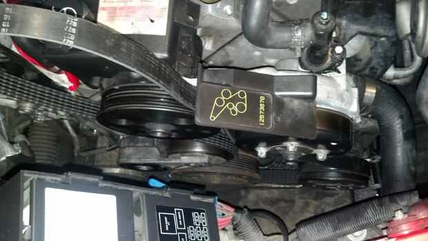 Agarrar la correa serpentina, pase como la última ilustración y utilizar su trinquete para insertar en la tensión-er polea, tire hacia arriba y envuelva la correa serpentina en el alternador