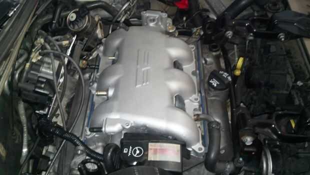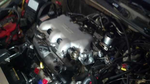 Lugar de los pernos de 10mm y el perno de 13mm en los dedos en un patrón X, asegurándose de que cada uno va con ningún problema, si uno de ellos lo hace no es alineado derecha, mueva suavemente el colector de ida y vuelta hasta que todos los pernos van en fácil que los dos pernos en el lado delantero del pasajero tendrá que venir hacia fuera debido a un soporte que sostiene un mazo de cables en la parte superior primero , luego los tornillos, se está haciendo para asegurarse de que el colector esté correctamente alineado. Asegúrese de que el arnés verde que el sensor MAP pugs en va en el múltiple de admisión superior y a través del orificio de la entrada superior.