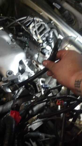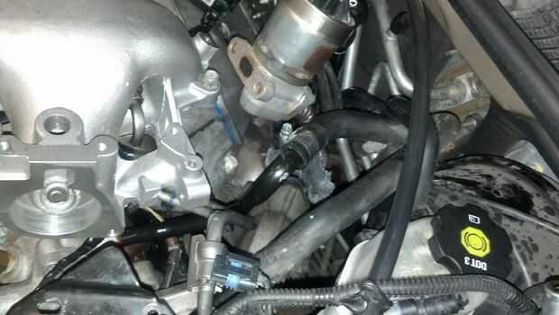 Ahora si usted escuchó lo que pongo aquí y no en la primera foto, podría haber salvado a sí mismo algún tiempo y agonía por mantener esta parte de la manguera de goma, raspar y limpiar todo el material de la Junta y anillo O en el motor de la bahía. Si lo hiciste Felicidades! Si no siga a lo largo. Después de reemplazar el anillo O algún fabricante de la Junta RTV en el extremo que va en el motor demandado a rojo alta temperatura RTV fabricante de la Junta. como se puede saber de la segunda y tercera fotos esta parte es bastante paliza, ponen la manguera en el motor y la manguera de goma, apriete la abrazadera de la manguera y asegurarse de que esta manguera se encuentra en el lado del conductor de la válvula EGR, no del lado del pasajero la manguera pasada no caben si no pones esta uno en su lado correcto.