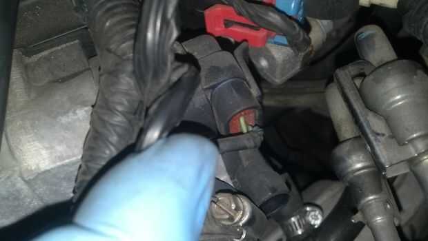 Desconecte el sensor del cuerpo del acelerador tirando hacia fuera la lengüeta de plástico tirando del arnés hacia fuera al mismo tiempo.