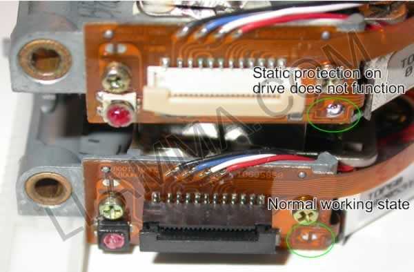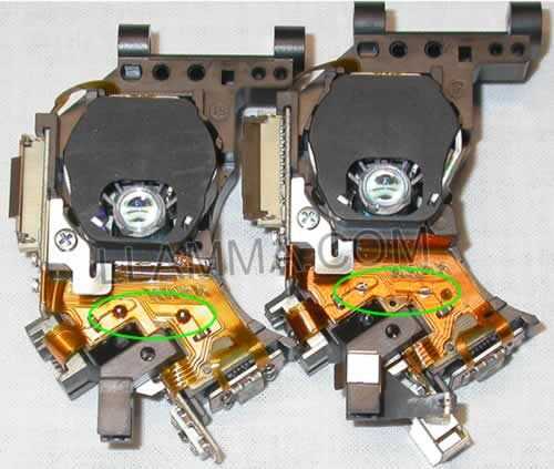 En este paso, usted tendrá que quitar un pequeño punto de soldadura. Estas fotos son de www.llama.com. Tenga muy cuidado sin embargo. Usted puede freír a la placa de circuito y el láser ya no es bueno.