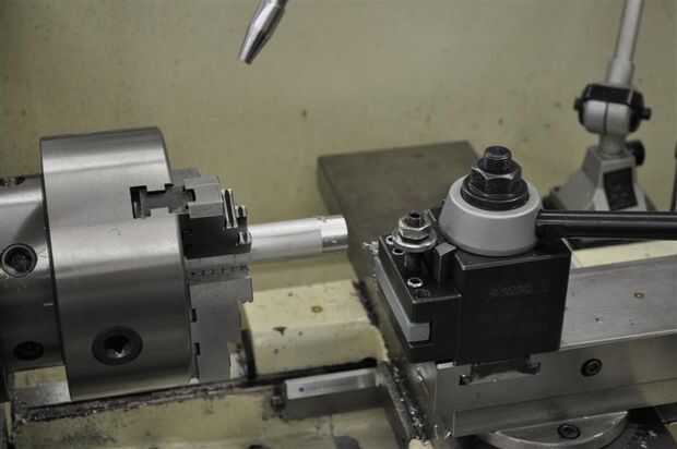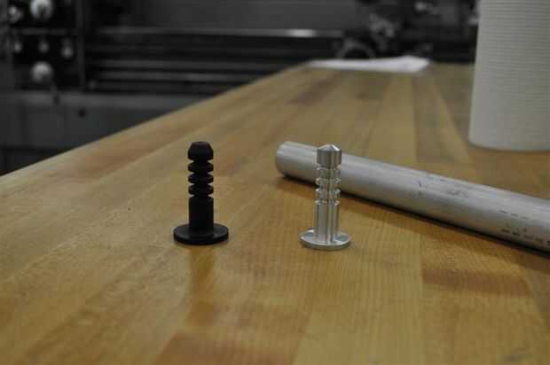 Primero, empecé con un pedazo de aluminio redondo stock aproximadamente el mismo tamaño que la punta inferior del perno. Hace un poco más fácil.