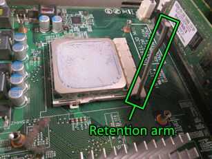 Desbloquear el procesador del zócalo a levantando el brazo de retención, que traba el procesador en su lugar
