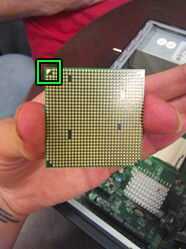1. Ubicar la esquina de la CPU del zócalo marcada con un triángulo y la línea hasta la esquina del nuevo procesador con el triángulo de fósforo