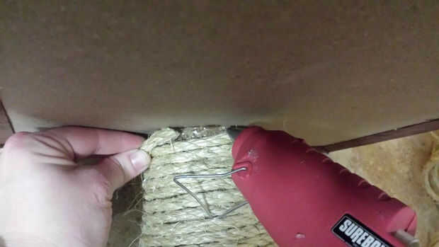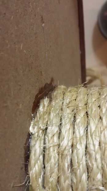 Una vez que el pegamento fija, colocar más pegamento encima de la cuerda y en el espacio para que esté asegurado en su lugar.