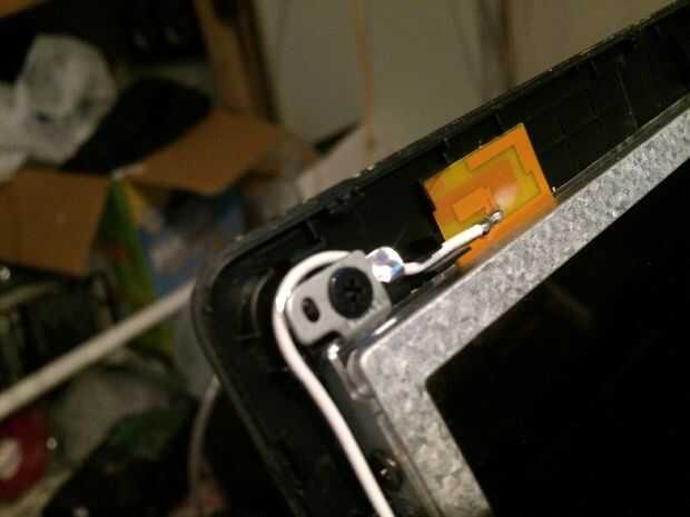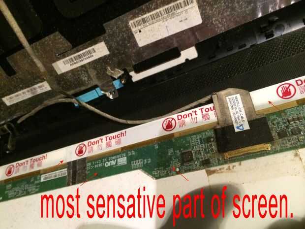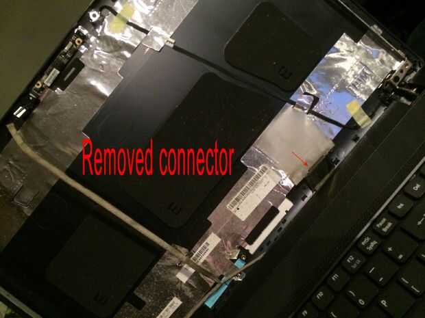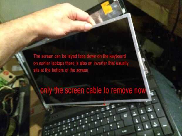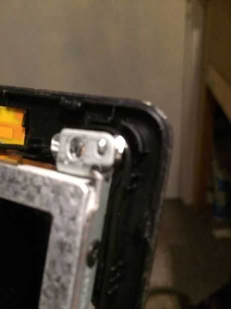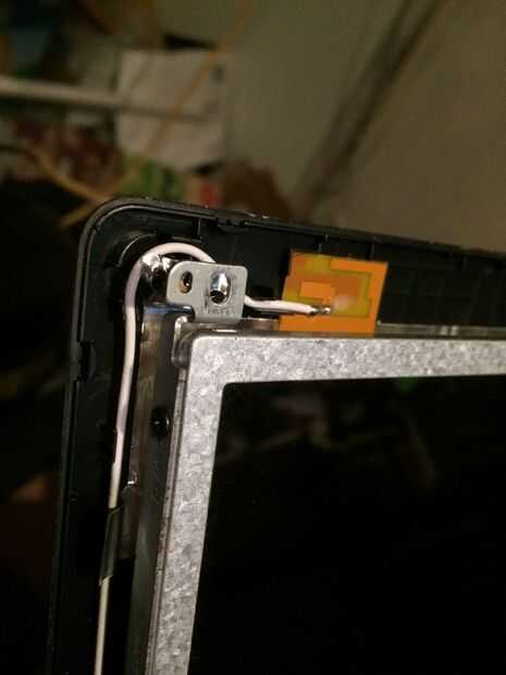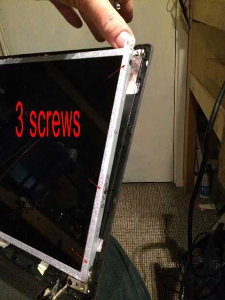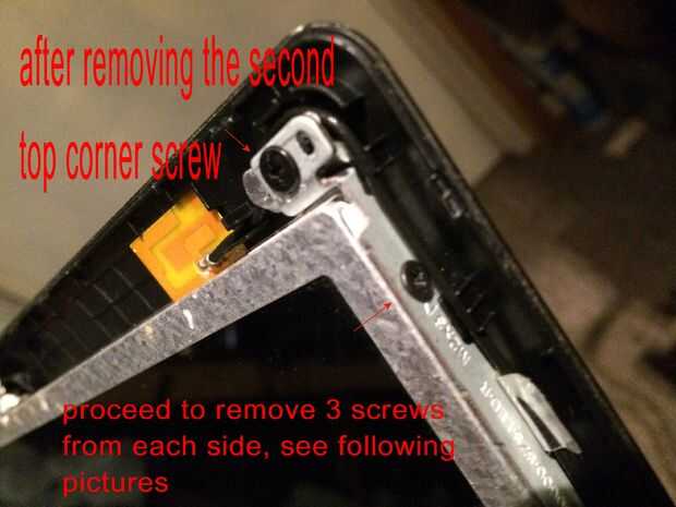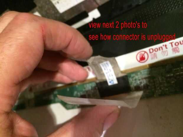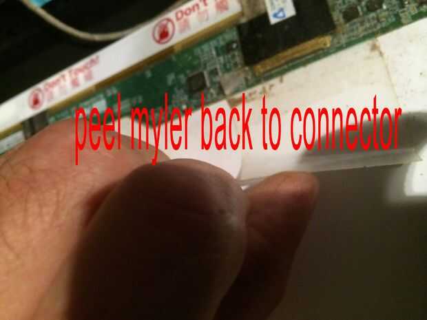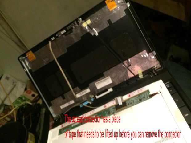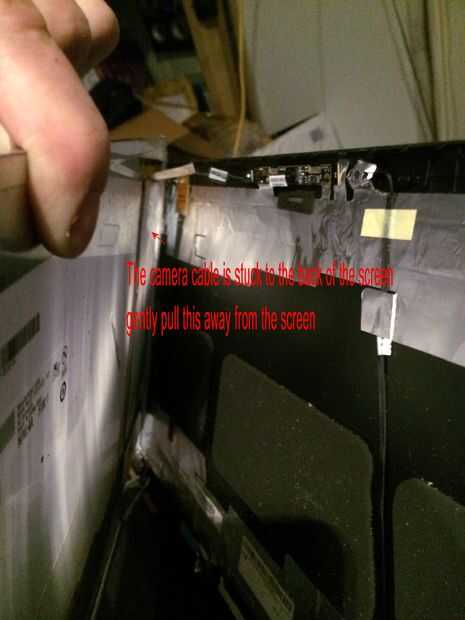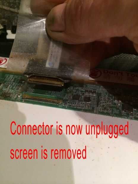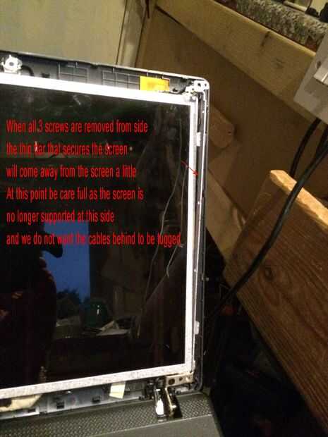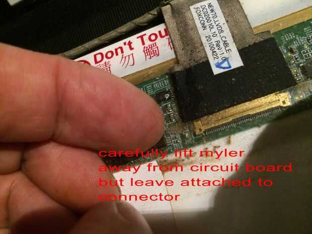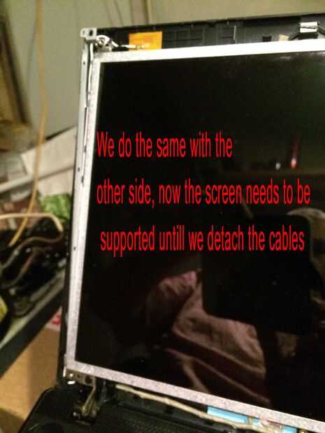 Las imágenes de este paso bastante mucho todo, pero caso que usted salta los... Quitar los 2 tornillos superiores que sujetan los soportes de la pantalla a la tapa mantiene la pantalla del móvil y dañen los cables detrás, quite los tres tornillos pequeños de cada soporte estos son todo lo que tiene la pantalla en su lugar. El cable de la cámara está conectado a la parte posterior de la pantalla en la mitad superior izquierda y mitad inferior izquierda con el pegamento por lo que esta necesita suavemente pelado lejos antes de colocar la cara plana de la pantalla hacia abajo en el teclado para quitar el conector de la pantalla principal. Es donde más atención especialy necesarios al cambiar por lo que se podría experimentar con la pantalla vieja sobre cómo volver a conectar el conector sin tocar el tablero como esta tiene componects muy sensible y micro pistas finas y cables integrados con la pantalla. Cuando la cinta o myler ha sido pelado detrás de la pantalla y tablero pero todavía pegado a la clavija de la izquierda, usted puede sacar el enchufe muy suavemente y con cuidado hacia el borde inferior de la pantalla. OK toma una respiración profunda y tal vez pasar un buen rato con leds cos necesita ser aún más cuidadoso montaje de la nueva pantalla en el paso 12.