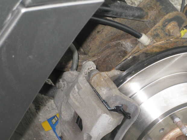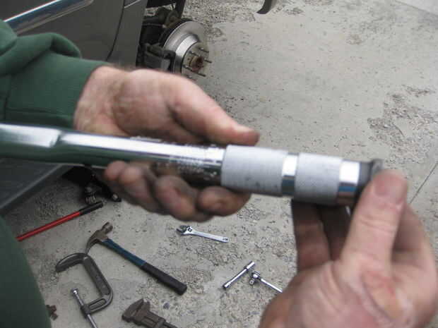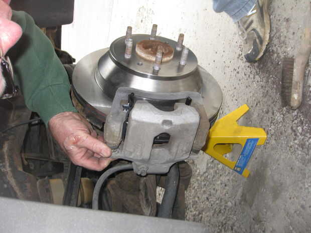 Cómo reemplazar los frenos (pastillas de rotores) en un GMC enviado With/For su padre (11 / 12 paso)