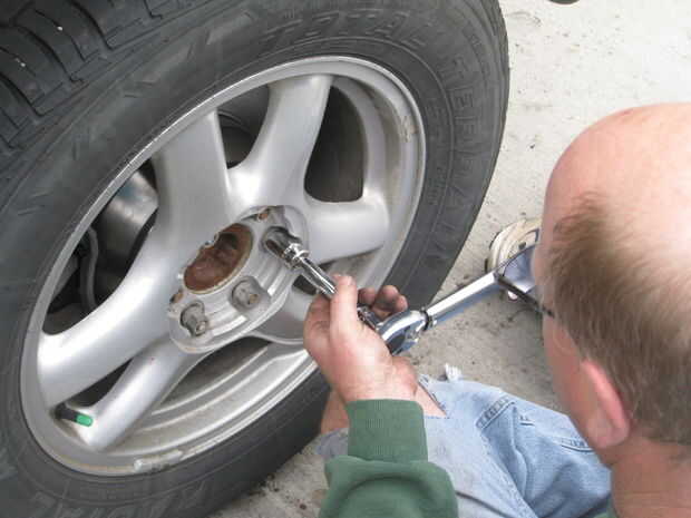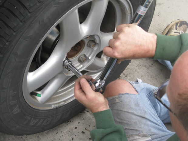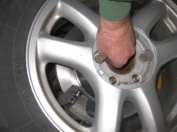 primero vuelva a colocar la rueda, apriete los pernos hasta medio apretado y luego lentamente bajar el coche en el suelo antes de apretar completamente las tuercas de la rueda. Ajuste la llave de esfuerzo de torsión al correcta ft/lbs (108) y entonces asegurar las tuercas mediante el método opuesto (paso 1). Luego vuelva a la tapa de gas líquido (si no lo has hecho ya). Asegúrese de hacer un funcionamiento de prueba de baja velocidad del vehículo para asegurar que los frenos funcionan correctamente. Tendrá unas bombas de los frenos para volver a llenar el líquido en la tubería. Así que hay que ir si estás dispuesto a poner en el tiempo que usted puede ahorrarse unos $500.