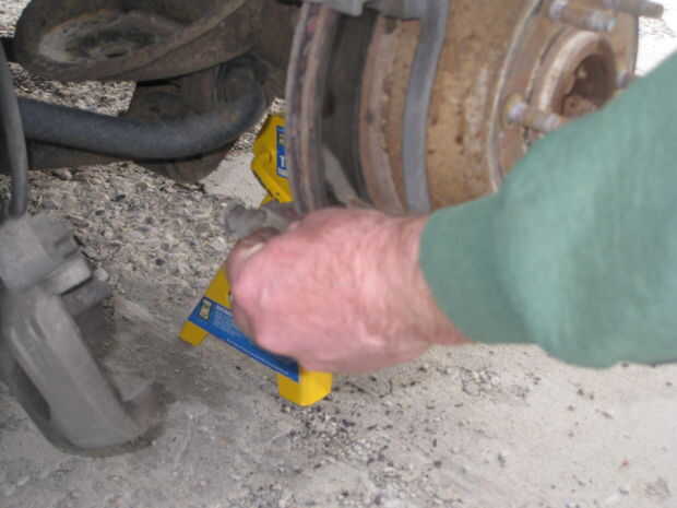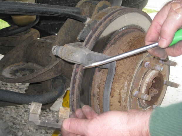 Cómo reemplazar los frenos (pastillas de rotores) en un GMC enviado With/For su padre (4 / 12 paso)