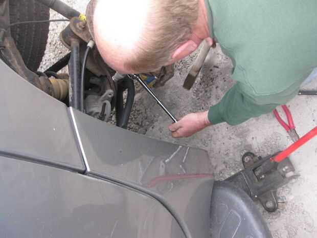No sé si este es su nombre oficial pero que es lo que lo estoy llamando. Estos pernos fueron asegurados por los mecánicos usando "lock apretado" por lo que son realmente difíciles de conseguir deshacer. Utilizamos una llave para tuberías gran culo una carraca grande una llave medio un martillo una palanca de metal grande y el pequeño pedazo de tubo abs para deshacer estos pernos. Siento que las fotos no variar bien pero es un pequeño espacio con una gran persona y las herramientas de la forma. De todas formas si tu de no asegurados con "lock apretado" probablemente se asignan más fácil.