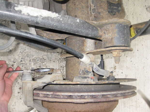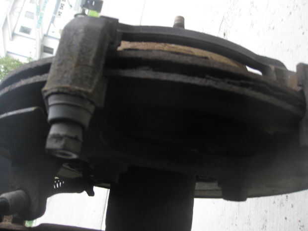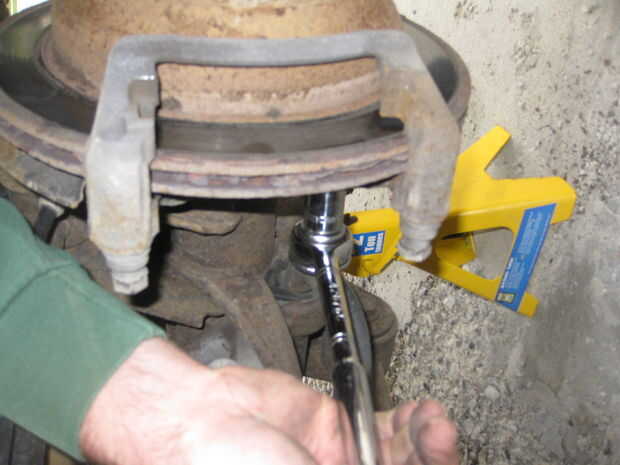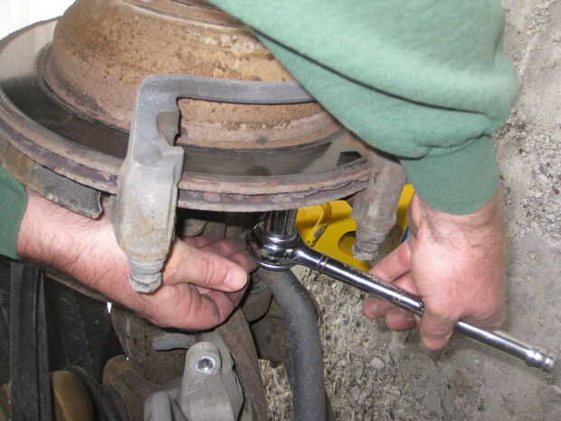 Cómo reemplazar los frenos (pastillas de rotores) en un GMC enviado With/For su padre (5 / 12 paso)