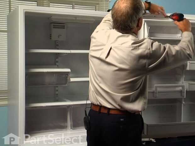 Ahora el primer paso en esta reparación será para apagar el refrigerador. Localice el control cerca de la parte del congelador y gire a la posición de apagado. El siguiente paso será descargar todos los contenedores en la puerta así que no hay ningún peso en ella. Con un sacatuercas de 1/4 pulgada, retire todos los tornillos completamente alrededor de la Junta excepto uno en cada esquina.