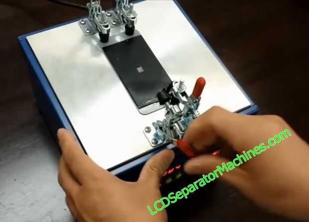 Una vez que la placa de la aleación es lo suficientemente caliente, colocar el ensamblado roto a él. Fijarlo con la abrazadera hacia abajo con sus cuatro pinzas que están conectadas a la máquina. Asegúrese de que la Asamblea no se mueve.