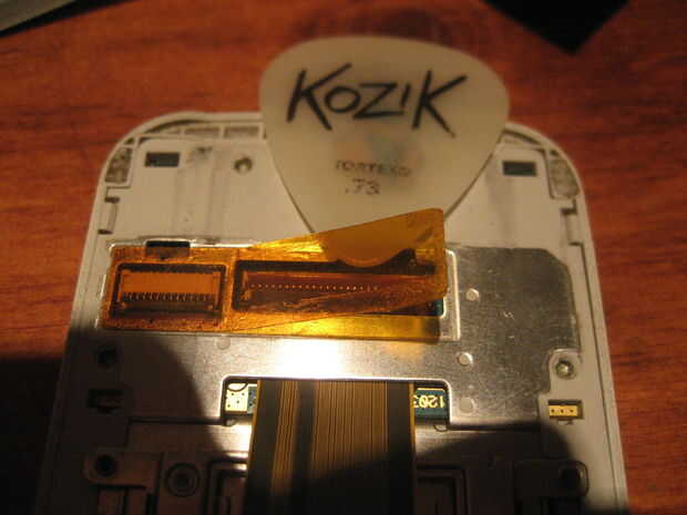 Slide guitar pick bajo la pieza de metal y quitar la cinta