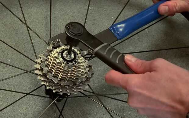 A continuación, envuelva el látigo de cadena alrededor de uno de los engranajes. Es literalmente tan fácil como colocar la cadena en los dientes del engranaje. Me pareció más fácil envolver todo el engranaje más grande; resulta más cómodo también. Ahora, sujete la herramienta de cassette en lugar con la ayuda de una llave en una mano y sostenga el azote de cadena con el otro. Manteniendo que el látigo de cadena inmóvil, gire la llave (y la herramienta de cassette) hacia la izquierda. Ahora, usted podra oir un sonido horrible como los engranajes de la rutina uno contra el otro, pero eso es normal (si no se oye un sonido, que es normal también). Continuar este movimiento hasta que salga el anillo de cierre. Una vez retirado el anillo de cierre, retire cada uno de los engranajes por separado o juntos.