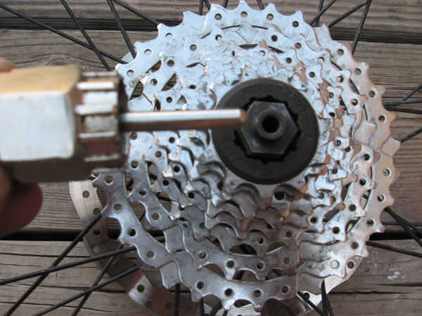 Ahora le coloque nueva rueda sobre una superficie plana. Volver a poner los engranajes en el orden correcto (mayor primero), uno por uno. Luego, simplemente Atornille el anillo de cierre en el lugar, como usted se convertiría una tapa de la botella al cerrar una botella. Una vez que crees que esté bien apretada, coloque la herramienta de cassette en, abrigo la cadena látigo alrededor de un engranaje y mantener el látigo de cadena fija, use una llave para girar el cassette herramienta hacia la derecha. Esto fomenta aprieta el anillo de cierre, sellado de los engranajes en su lugar!