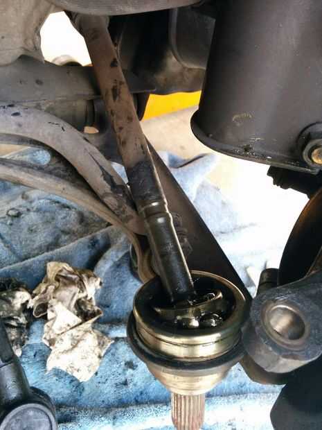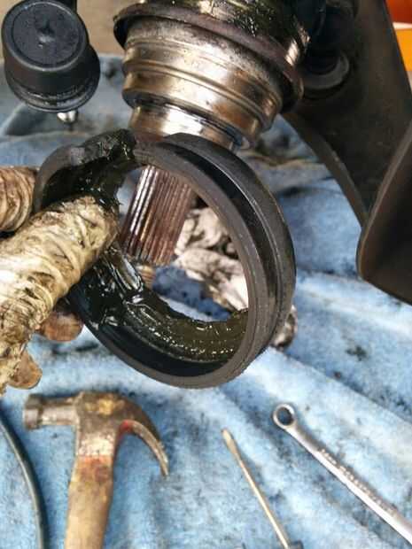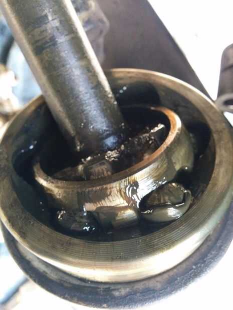 Una vez que se retira completamente la bota vieja comenzar la limpieza del eje y cojinetes. Utilice un trapo viejo para empezar a limpiar los escombros inicial lejos. Para eliminar completamente la grasa o suciedad del interior del cojinete, rocíe algún limpiador del carburador o acetona en el cojinete hasta que sale no más grasa o suciedad.