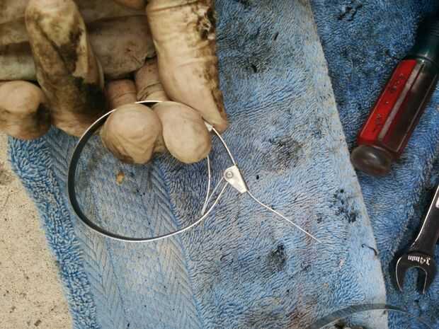 Las bandas pueden ser complicada, pero con este kit usted realmente no necesita una herramienta especial. Siga las instrucciones en las fotos para más detalles. Básicamente tienes que instalar la banda, tire firmemente mientras no permite que gire, luego tire la extra las bandas detrás la manera opuesta para crear una curva en ella. Luego utilice alicates o un martillo para doblar las lengüetas hacia abajo sobre la porción de banda extra y corte/plegado el exceso.