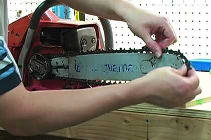 Enrosque cuidadosamente la cadena de la motosierra nuevo o recientemente afilado alrededor del tambor de embrague de la motosierra, asegurándose de que los eslabones encajen en la rueda dentada.