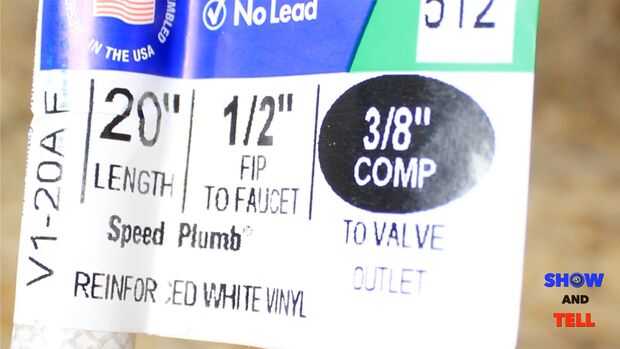 Quite las viejas líneas de suministro si son demasiado cortas. Mina eran así que tuve que comprar nuevas líneas de suministro. Comúnmente, se presentan en PVC y acero inoxidable. He comprado (2) grifo de PVC de 20" las líneas de suministro de aproximadamente $6 cada uno.