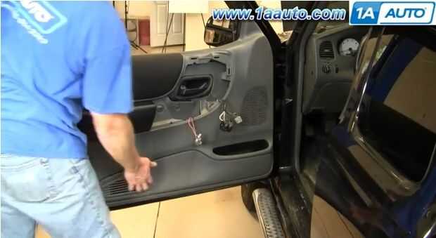 Quite los dos tornillos más desde el panel de la puerta, debajo de la placa de tracción y uno en la parte inferior. Levante el panel de la puerta y fuera de la puerta. Para acceder a la parte interior de la puerta Retire con cuidado la watershield tirando de la puerta. Pone el watershield Apartamento en algún lugar fuera del camino mientras hacía la reparación.
