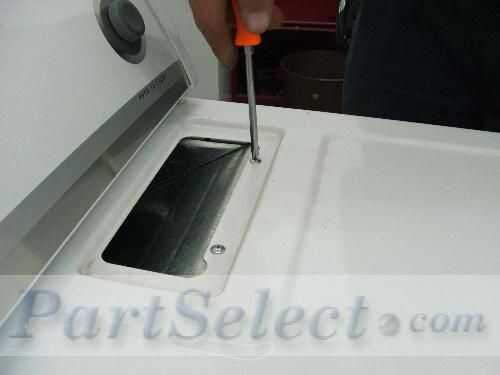 Empezar por quitar el filtro de pelusa. Esto expondrá a los tornillos que deben tomar hacia fuera. Utilice el destornillador de 5/16 para este paso.