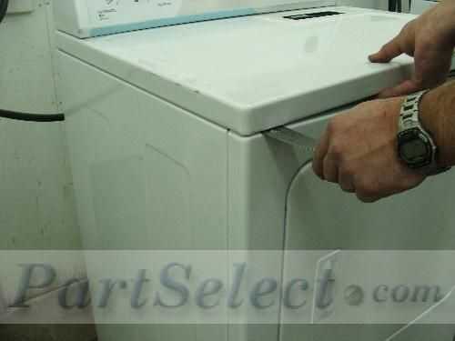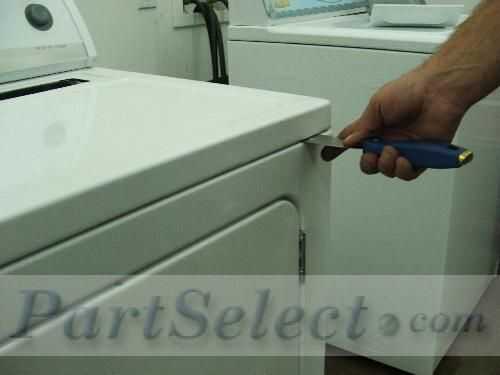 Con la espátula, coloque en la abertura entre la parte superior de la secadora y la parte frontal de la secadora y pop up. Repita en el otro lado.