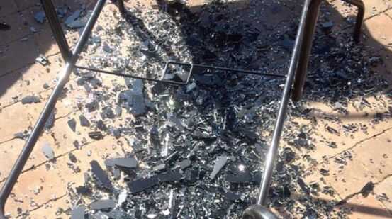 Nuestra mesa de patio se volcó durante una tormenta eléctrica severa. La mesa de vidrio roto en el lugar y nos dejó con sólo un marco de metal y un tremendo lío para limpiar.