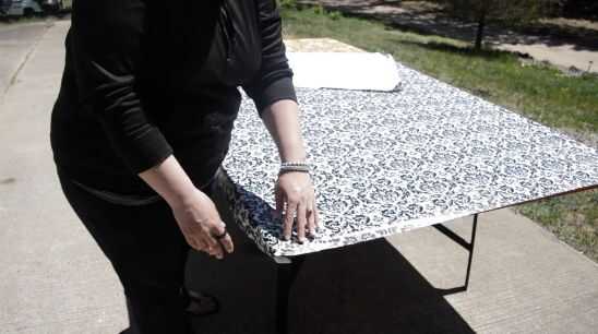 Paso 2: Aplicar la tela de vinilo para la tapa de tabla