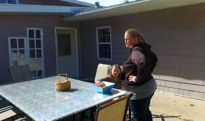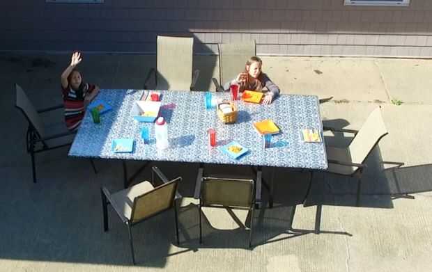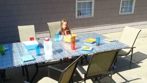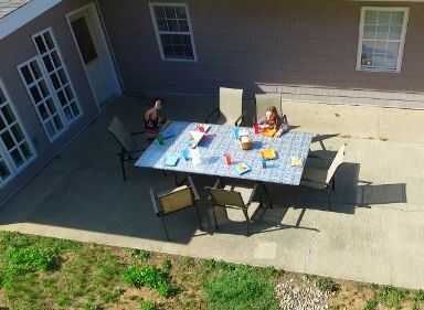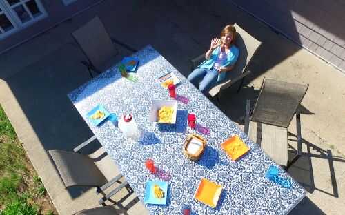 Una vez finalizado tienes una mesa nueva, de alta resistencia. También es más seguro porque no rompen si usted consigue una gran tormenta. El beneficio final es que realmente puede personalizar su diseño basado en la tela que usted elija. Puedes ir con un color sólido o utilizar un patrón como lo hicimos.