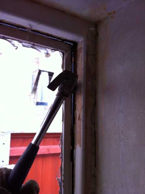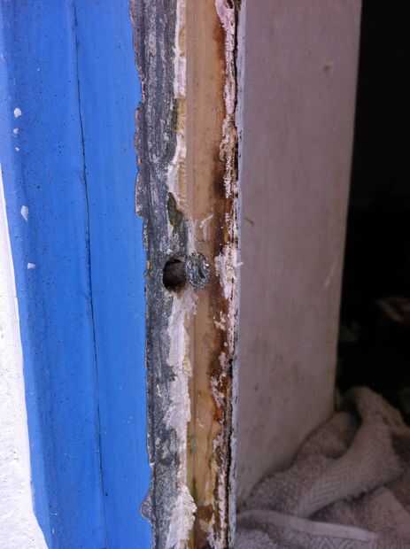 Golpee el marco del metal con un martillo (duro) y eventualmente a soltarse de los años de pintura y vienen gratis!