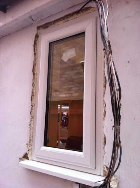 Poner en la ventana - puede usar a espaciadores de plástico (gratuitos con la ventana) para elevarlo si lo necesita. Es mejor hacer esto para que cualquier humedad gotear fuera de la base de la estructura aunque el agujero de drenaje.