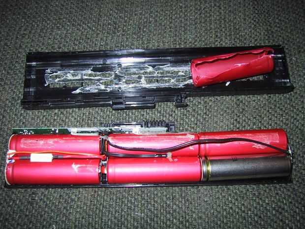Poner las nuevas células en el caso. Soldadura/soldadura de nuevo los cables y las células.