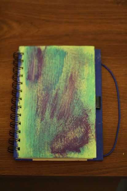 Para el steampunk, opté por un verde metálico. Simplemente porque iría bien con los adornos que tenía en mente. También me aseguré que las líneas eran lisas cuando lo pintó. La versión teñida lazo, tomé tres colores y mezclado para mi gusto. Observe que utilizan dos tipos diferentes de cepillos para alcanzar el efecto deseado. Usted puede hacer para todos los gustos. Puede ser elegante, funky o en algún lugar entre. Después de todo es su diario.