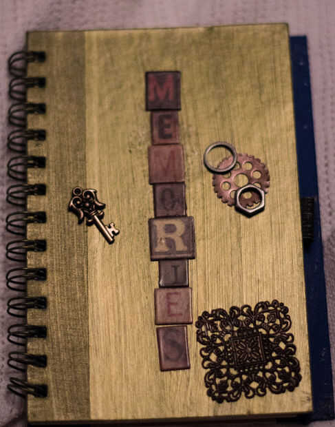 Steampunk... engranajes, llaves, filigrana, alas, relojes, a veces el cordón, sí, he puesto encaje en una revista. . Así que una vez más, agarré el E6000 y se puso a trabajar. I había trazado de las piezas y decidido dónde colocarlas. Una vez que los tenía donde yo quería, a había pegado en su lugar. Una vez que el pegamento tenía tiempo para secar, tuve mi propio diario personalizado, a mi gusto y mi estilo.