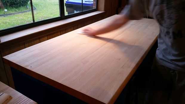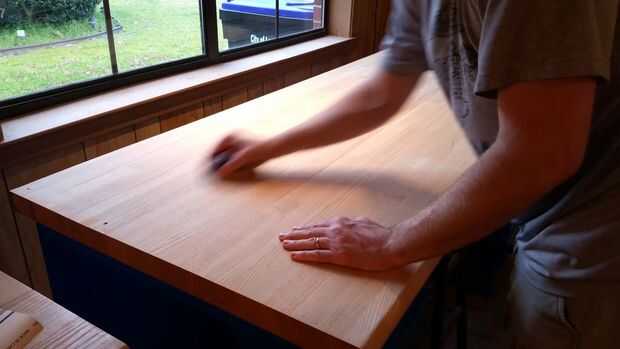 *** Si está usando un acabado a base de agua como yo, debe limpiar la superficie limpia de la madera con un paño húmedo y deje que se seque. El grano de madera subirá ligeramente, pero ligeramente lijado con grano 220 hará suave otra vez. Esto evitará que el acabado de levantar el grano, que le da un acabado final áspero.