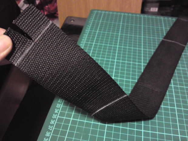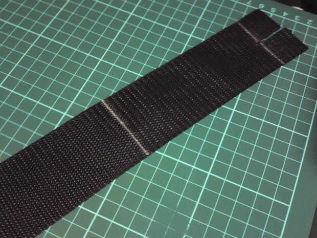 agarra un encendedor un cuidadosamente derretir la cinta de corte recién corta para que no desentrañar y asegúrese de que para ello, a ambos los cortes inmediatamente de lo contrario su servicio pesado y costoso correas comenzará a desentrañar y perdía muy rápidamente...