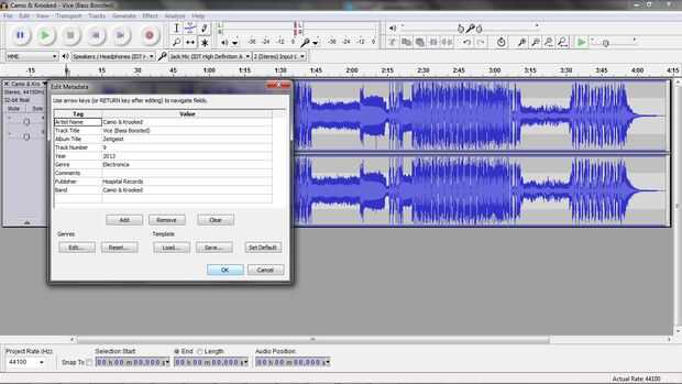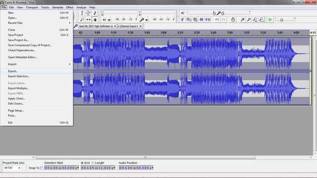 Ahora que haya terminado es necesario exportar la canción. Haga clic en archivo en la esquina superior derecha y en el menú desplegable haga clic en exportar (Asegúrese de que su canción no está jugando) y salvar a su localización deseada. Haga clic en aceptar y luego abrirá otra ventana dando la opción de cambiar los metadatos. Haga clic en el título de la canción y añadir bajo impulsado al final Presione ok y termines!