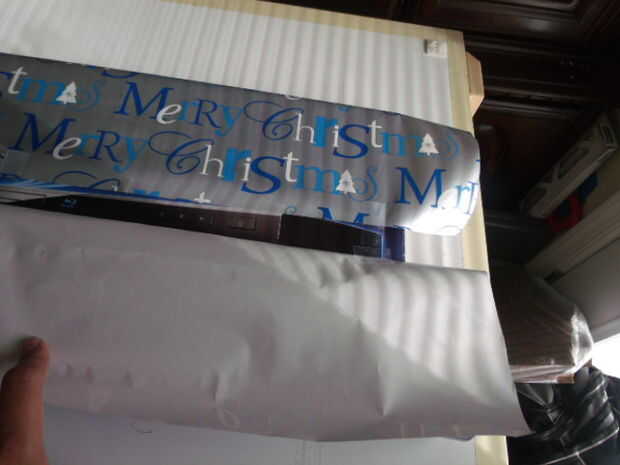 Cubrir la caja con el embalaje de papel hasta la mitad y luego doblar hacia atrás y poner cinta en ambos lados para garantizar el papel.