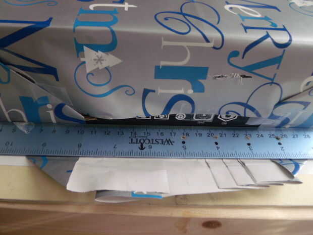 Use la regla para hacer un doblez uniforme y luego pliegue la aleta de la cinta hacia abajo.