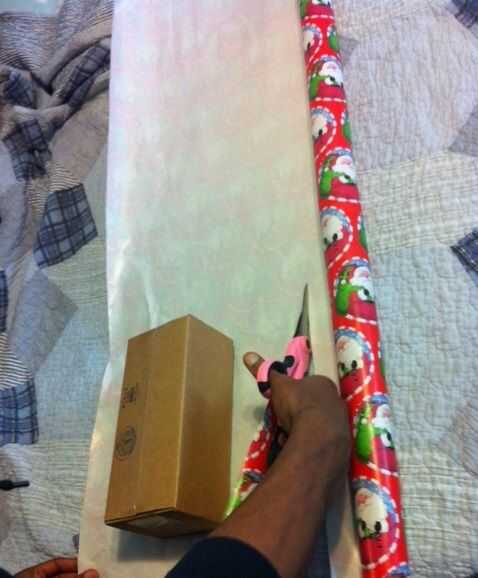 Toma tus tijeras y corte un pedazo proporsional alrededor del presente. Asegúrese de que la pieza que se corta no es demasiado más grande que el actual presente tamaño (para evitar el acceso de papel).