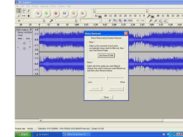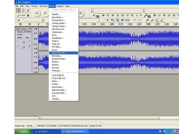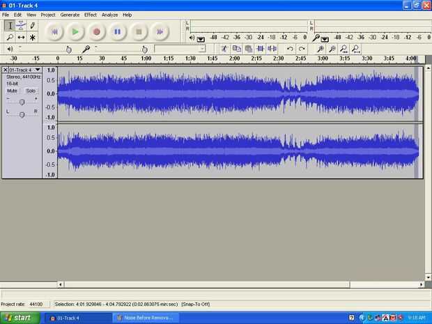 Ahora que tenemos sus preciosas cintas grabadas en un formato un poco más utilizable que vamos a retocar un poco su calidad. Cintas de cassette y discos antiguos sufren de estática que técnicamente se denomina ruido blanco. Estática es generalmente mucho peor en cintas de registros pero a menudo también está presente en los registros. Así que ahora vamos a quitar para que su música es más agradable, siga estos pasos: