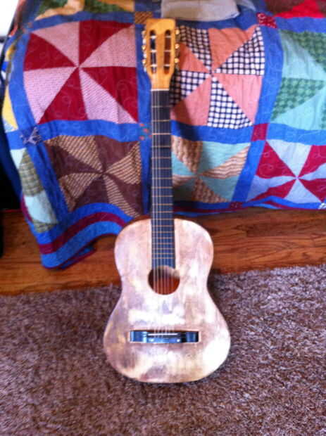 Personalizar una guitarra, con toboganes de agua. (o cómo convertir una guitarra acústica gratis algo que puede sentirse orgulloso de jam con)