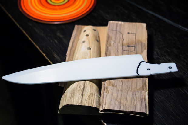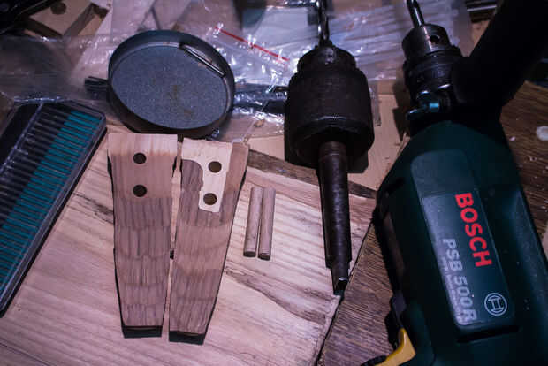 Con el lugar donde se asienta la cuchilla fue tiempo para la perforación que es bastante sencillo. Sólo marque los agujeros y perforar. Si sientes aventurero y sabe cómo detener el sangrado eficazmente, perfore los orificios existentes en la hoja. Con orificios en un lado, perforé el otro lado a través de los orificios existentes que dio lugar a uno frente al otro lo suficientemente bien como para poner las clavijas agujeros. Es una buena idea a ver si tacos los agujeros en el mango y la hoja muy bien ya que no es algo quiere hacer con el pegamento ya. Si usted necesita ampliar el orificio de la cuchilla, Dremel con una punta de grabado de diamante hará el truco.