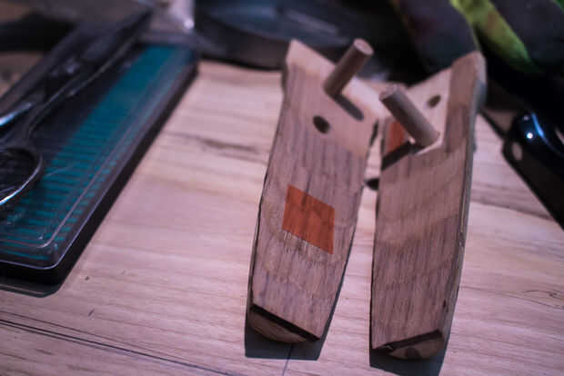 Tener dos piezas de madera con los lados planos al menos particularmente era un reto para mí y utilicé algunos chapa nogal hojaldradas para hacer la forma que quiero y ver si hace que un look interesante. No es así. Luego describí el pedazo de hoja que debía sentarse dentro del mango. Lo hice por lo que es más de lo mismo sentado en para la fuerza agregada. Después de me mide el espesor de la hoja y retirar la cantidad necesaria de la madera de la zona marcada. Una herramienta Dremel con algún tipo de plano inferior punta de enrutamiento y 576 accesorio se utiliza para la mayor parte de la obra y luego cuchillo x-acto y cincel para recortar los bordes cuidadosamente. El accesorio 576 es una mierda por cierto, no comprarlo.