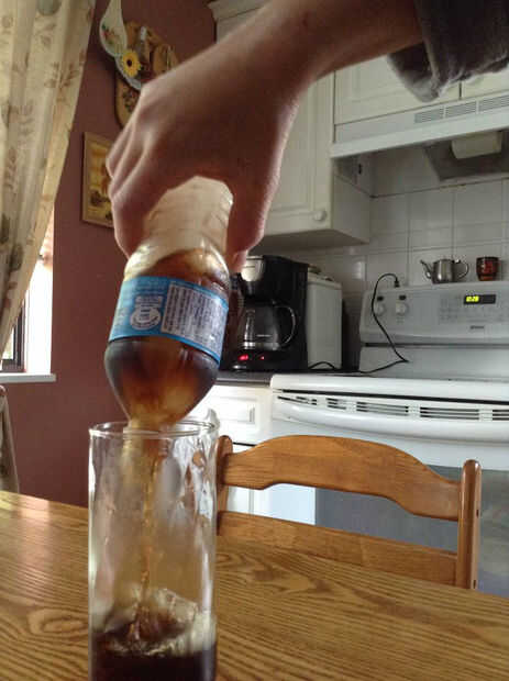 Tomar la tapa de la botella y rápidamente vierte la bebida en el vaso y su listo para servir.