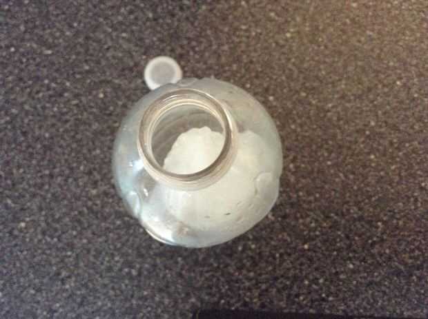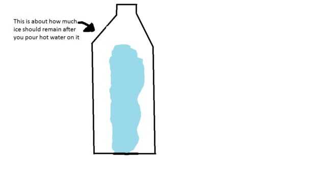 Ahora, vierta agua caliente en la botella para que el hielo se derrite más rápido.