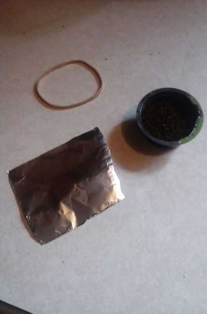 Papel de aluminio cortado en cuadrados poner en copa y asegurar con goma elástica