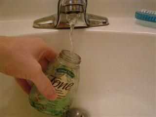 Sugerencia: Agregue el agua lentamente, con el fin de no agitar demasiado el jabón - si mezclas mientras que usted está añadiendo agua, usted tendrá un tiempo duro conseguir que llenar sin rebosante de espuma por todas partes.