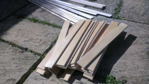 Los listones curvos son los mejores para el Banco ya que proporcionan algunos amortiguación de resorte en el asiento y respaldo lo que para una posición un poco más cómoda en lugar de un marco y base de contorno. Tomé un paquete de listones de 700mm para la parte posterior y luego un paquete de listones de 900mm que corté por la mitad para el asiento.
